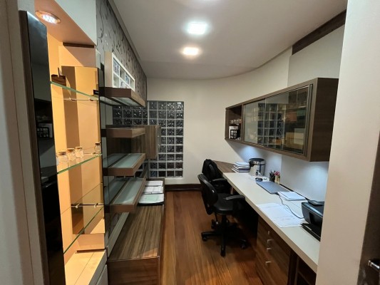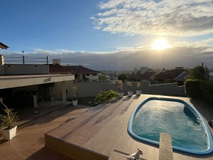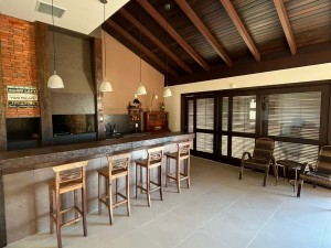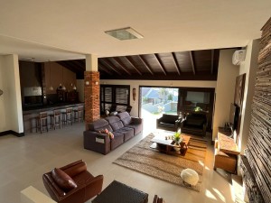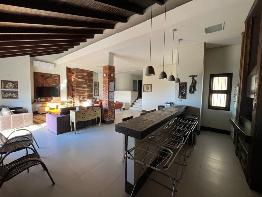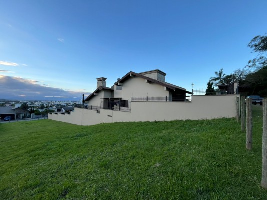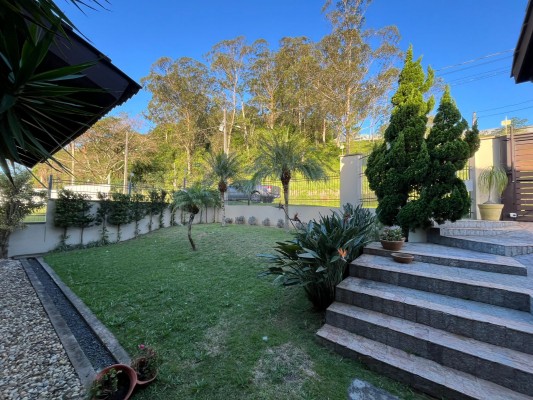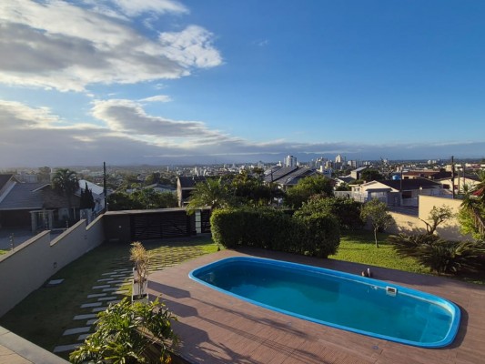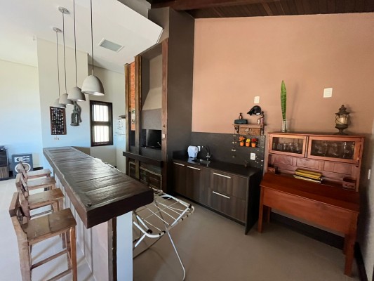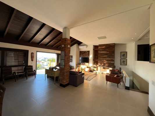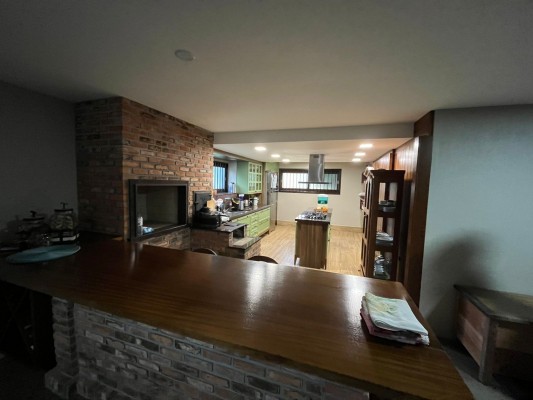 Pavimento superior: Com 3 dorms, sendo 1 suíte c/ banheira e closet, espaço home office, bwc social, ampla sala de estar e jantar c/ lareira e churrasqueira, lavabo, cozinha reversível, área de serviço, garagem p/ 2 veiculos. Pavimento térreo: ampla área social c/ cozinha equipada c/ fogão a lenha, churrasqueira e bwc social. Área externa: churrasqueira, piscina, e ampla área livre de pátio c/ estacionamento aberto e acesso independente pra via. Aquecimento com sistema solar.