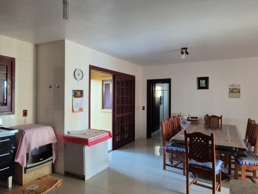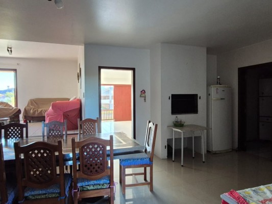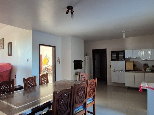 Com 4 dorms, sendo 1 suÃte, bwc social, sala de estar, copa/cozinha integrada c/ churrasqueira, área de serviço, garagem p/ 2 veÃculos, varandas. Com mobilia. Nos fundos quiosque c/ churrasqueira. Terreno com área de 750,00m2 medindo 15mts de frente. Distante 450mts do mar.